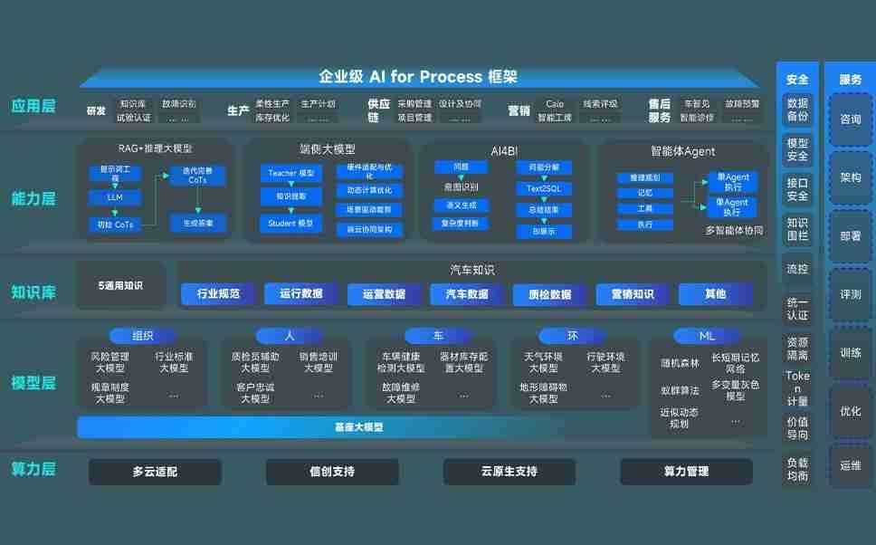 z6尊龙问学智车解决方案是一套基于AI技术的汽车行业智能化系统,,,覆盖从底层算力到顶层AI应用的全栈方案。。方案由算力层、、、、模型层和应用层组成:算力层,,方案支持多种一体机配置,,,具备云端灵活部署、、多云适配以及动态优化计算资源的能力;模型层,,,z6尊龙问学平台版提供了企业级AI应用一站式构建与管理平台,,,支持基于后训练强化技术的汽车企业专属模型的训练、、评测和运营;应用层,,,,z6尊龙问学DeepSeek版提供包括超级员工、、智能招采、、、、智能营销、、、、智能客服、、AI for BI等一系列解决方案,,可助力汽车行业实现数字化转型,,,,让管理更智能、、、、响应更敏捷。。。